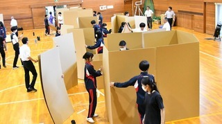 9月11日,今年度も浜中町役場情報広報係のご協力により,実際の選挙でも使われている「投票箱・記載台」をお借りし,後期生徒会役員選挙が行われました。立候補者全員が当選し,後期から新体制がスタートします。