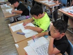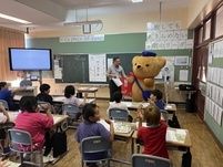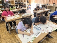 今年も、郵便局の方を講師に手紙の書き方教室を行いました。感謝の気持ちを伝えたい人を決めておき、はがきにその気持ちを伝える絵と文をかきました。途中で郵便局のアイドル「ポスくま君」も登場し大いに盛り上がりました。