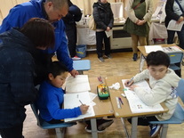 2月12日(木)、2年生が、国語や生活科の学習でつくったおもちゃでおもちゃ大会を開催しました。お客さんは1年生です。1年生に楽しんでもらおうと、おもちゃの使い方、ゲームのルール、お店の看板、賞品メダルなど一生懸命準備して当日を迎えました。