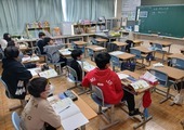 低学年の交通安全教室が行われました。あいにくの天候だったため、浜中駐在所のご厚意で室内での開催となりました。自転車の模擬体験や横断歩道の渡り方など、改めて学ぶ良い機会となりました。