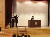 長い2学期も今日が最終日です。朝一番に終業式を行いました。校長愛挨拶のあと、児童会代表のお話では、遠足や茶コレなど楽しかった全校行事や冬休み中に頑張ることの発表がありました。また、来年の干支にかんするクイズもありました。明日からの23日間の冬休みを有意義にすごし、また始業式で全員の笑顔が見られることを期待しています。