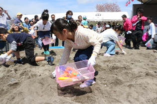 サクランボの「種飛ばし大会」や「潮干狩りゲーム」、「桜花咲鉄砲汁」、「ホエイ豚丼」、「たこ焼き・ホッキ焼き浜中丸」など、毎年好評の催しと味覚で会場は大いに盛り上がりました