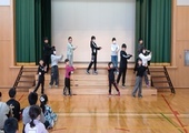 100周年記念式典まで、残り3週間を切りました。学習発表会で披露した縦割り班ダンスを、式典でも演じます。縦割り班ごとに分かれ、本番に向けて入念に確認しながら仕上げています。