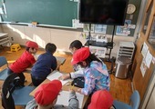 高学年による1年生のお世話の一コマです。1年生が少しでも早く学校になれるよう、工夫しながら1年生にかかわってくれています。