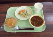 今日の給食は、「ハヤシライス」「ハスカップゼリー」「牛乳」です。浜中町の給食は、とてもおいしいですよ。そのおいしさが少しでも伝わればと思います。