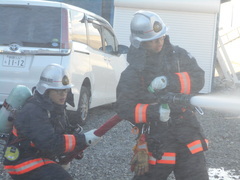 火災が発生した場合の避難口や避難場所は出火場所や気象条件によって変わりますが、今回は事前に訓練の時間と避難場所を告知しない訓練を行いました。霧多布消防署員の方からは、火災に対する避難についてのアドバイスをいただき、その後、消火器による消火体験を行いました。これからも火災や災害から身を守る方法を学ぶ機会を増やしていきます。