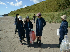 町内の「LandEdge」の敷地内の防霧保安林の見学や海を望む展望台から地形の特徴を学んだり、海岸線の漂着ごみから環境問題について考えたりする学習をしました。浜中町の豊かな自然環境について実際に触れる体験を通してふるさとへの理解を深めることができた学習活動となりました。