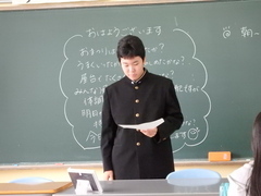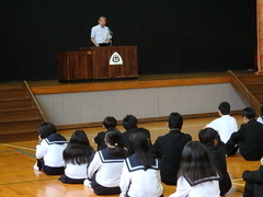 各学年の代表者が1学期の反省と2学期の展望を全校生徒に向けて発表しました。終業式では夏休みの生活について「自分の人生を大切にすること」「健康を維持すること」「生活力を磨くこと」の3つを大切に夏休みの生活を送ってほしいと校長先生からお話をしてもらいました。