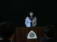 霧中からは2年生の小川真実さんと秋元凜空さんが参加しました。小川さんは「開志力」という標題で、留学した経験から語学の大切さについて実感したことや他の国の人とのコミュニケーションの大切さについて主張しました。秋元さんは、「小確幸」という標題で、幸せに生きることについて動画の視聴やお菓子を作る体験を通して、「幸せを身近に感じることで心が健やかになる」というポジティブな考え方が大切なことについて主張しました。二人とも3月から構想を練って頑張ってきました。素晴らしい発表をありがとうございました。